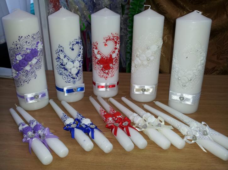 Всем уже давно известно, что абсолютное большинство вещей можно сделать индивидуально на заказ, и свадебные свечи не исключение. Любой формы и размеров, а так же любых цветов. По прошествии праздника свечи еще долгое время будут стоять у вас на полке в качестве напоминания о вашем самом важном празднике в жизни.