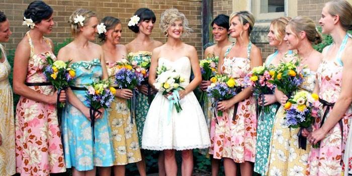 - Подружки невесты будут прекрасно выглядеть, надев одинаковые платья, подбирая цвет, исходя из самых ярких тонов места проведения праздника.