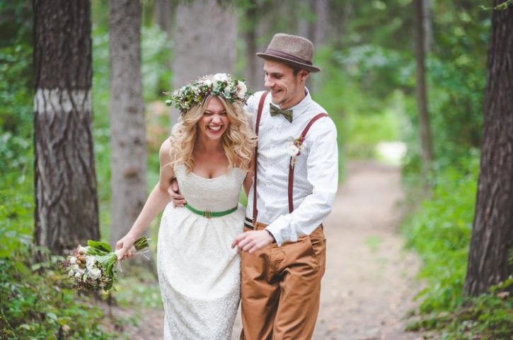В образе жениха по-прежнему больших изменений не наблюдается: свободная и легкая рубашка, расстёгнутые верхние пуговицы, ну и куда же без подтяжек. Обувь, конечно же, будет на ваш выбор. Главное, что бы не выбивалась из общей картины.