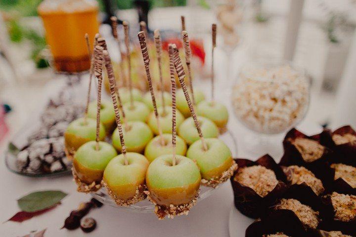 Органично и романтично будут смотреться зажженные свечи, а так же фруктовые и цветочные композиции, размещенные на столах и не только. Праздничное меню должно изобиловать легкими закусками, салатами, нежирными блюдами, различными канапе и иже с ними. Важно не забыть про прохладительные напитки. Идеально подходят различные холодные чаи, лимонады, коктейли и минеральная вода. С тортом тоже лучше не перебарщивать: кремово-мастичный торт подойдет для более холодного времени года, а вот для летней свадьбы лучше выбрать с фруктами и ягодами.