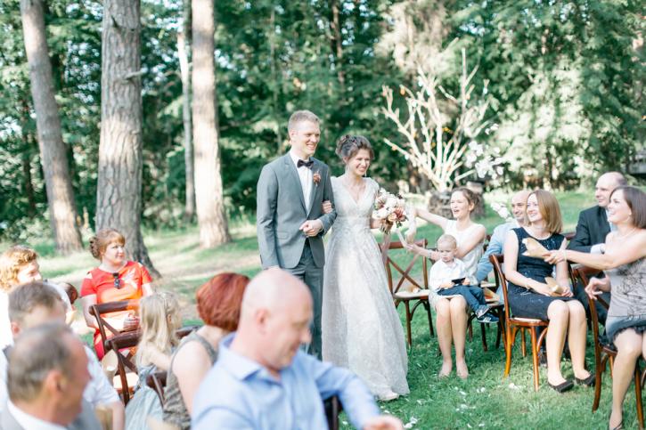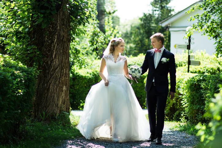 Жениху и невесте стоит учитывать, что в августе днем достаточно жарко. Поэтому лучше остановить свой выбор на легких нарядах из натурального волокна. Для невесты идеально подойдет белое или максимально светлое платье с обнаженной спиной или плечами: и солнце на плате таких цветов не задержится, и ветерок будет приятно холодить оголенные участки. И уж, тем более, не стоит выбирать фасоны с корсетами и кринолинами. Лучше остановиться на чем-то легком, воздушном и свободном.