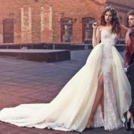 - Способ первый – фасон. Короткое или супер-короткое платье, открывающие взорам самые пикантные или выдающиеся часть тела невесты. Либо длинные, но почти абсолютно прозрачные платья. Практически у любого современного свадебного дизайнера в коллекции можно найти подобный наряд.