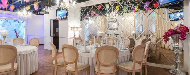 В случае с рестораном, предпочтение следует отдавать классическим залам, оформленным в традиционном стиле – сдержанно и празднично. Светло-бежевая гамма, декор с позолотой будут очень хорошо смотреться и сочетаться с событийным поводом банкета.