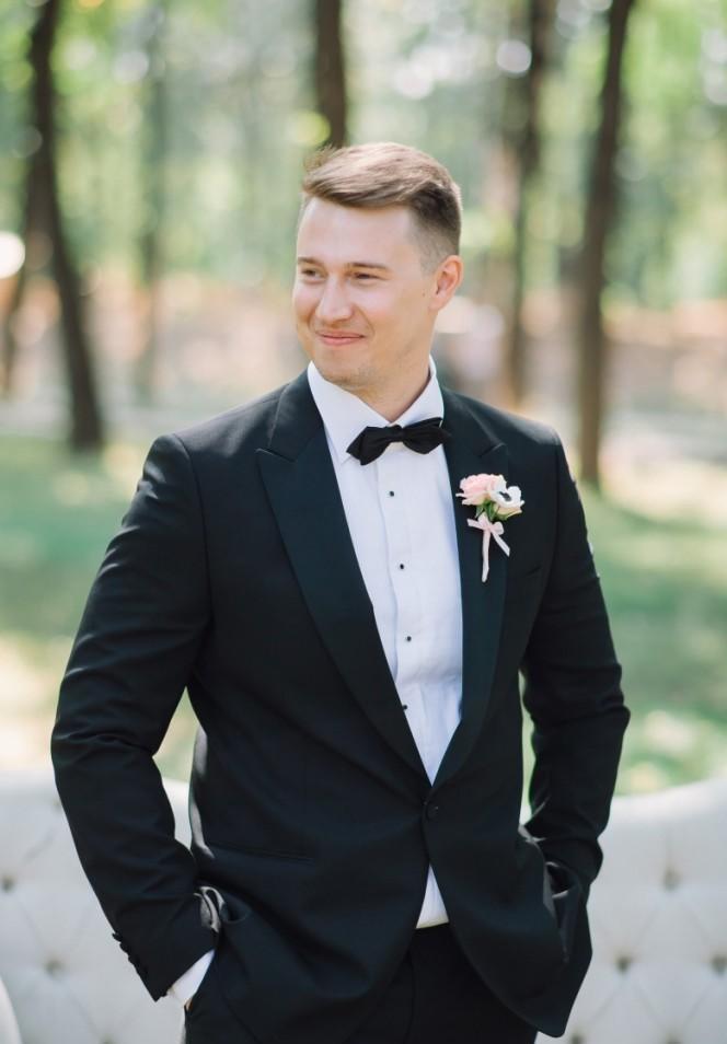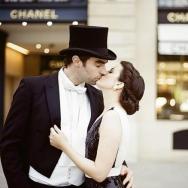 Наряд жениха следует подобрать во французском стиле. Отдайте предпочтение костюмам «двойкам» или «тройкам» с подходящими аксессуарами – галстуком, перчатками, часами на цепочке в стиле начала 20 века и т.д. Наряд должен получиться максимально элегантным и мужественным.