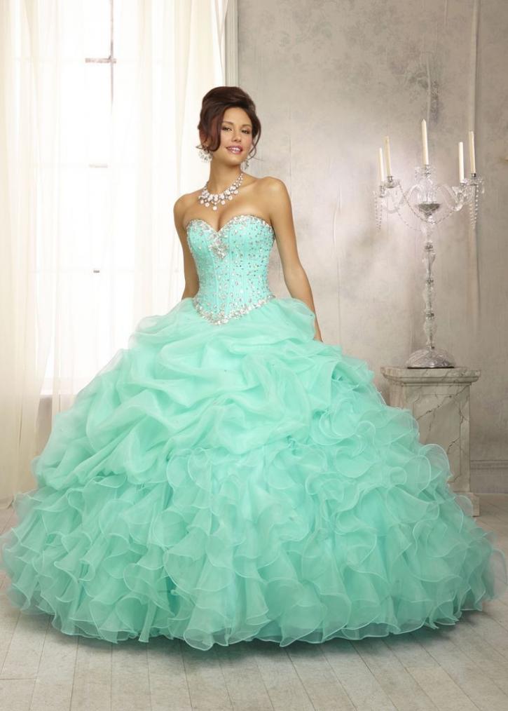Свадебное платье может быть как ментолово-голубым, так и белоснежным. Тема подчёркивается аксессуарами и деталями: