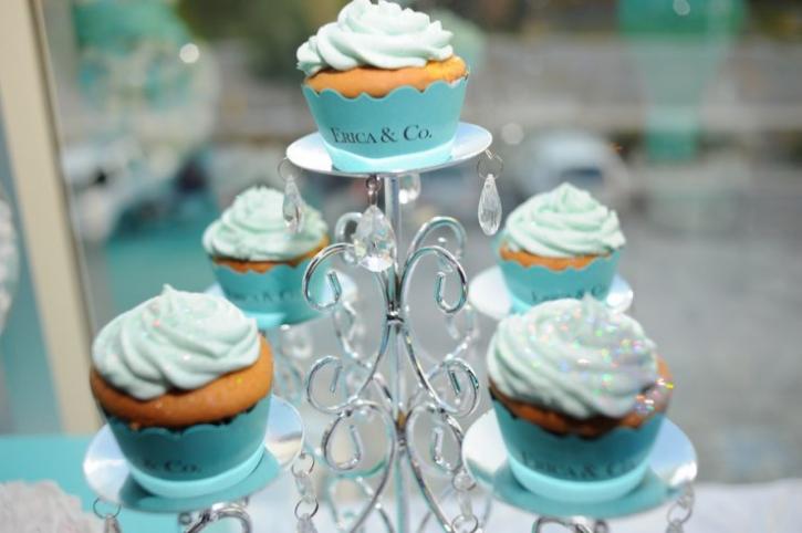На заметку: кенди-бар с маффинами, капкейками, макарунами – удачная идея для свадьбы в стиле Тиффани.