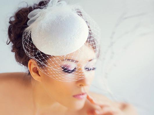 Самым романтичным образом стилисты называют тот, который загадочно прикрывает лицо или часть лица вуалью. Вуалетка, как и любая другая шляпка для новобрачной гораздо лучше выглядит в тандеме с лентами, пёрышками и цветочными композициями.