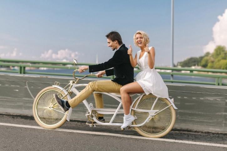 Чаще всего необычный транспорт на свадьбе выбирают для получения эффектных фотографий. Оригинальные снимки получатся, если жених и невеста наденут ролики, проедутся на велосипедах, взяв в одну руку букет из воздушных шариков. Большой простор для креатива дает общественный транспорт: метрополитен, автобусы, трамваи. Если у вас отличное чувство юмора, можно договориться об аренде пожарной машины или другого спецтранспорта.