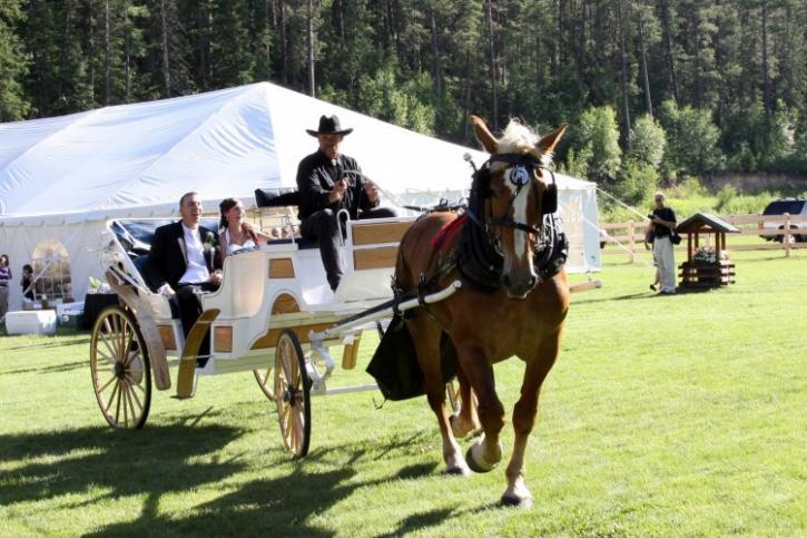Гужевой транспорт. Сложно представить более прекрасную картину, чем пара влюбленных на лошадях. Считается, что лошади на свадьбе приносят удачу, не зря же подкова стала символом счастья, поэтому если есть возможность взять в аренду пару грациозных животных, не упускайте ее. Если кататься не умеете, достаточно пары уроков, чтобы научиться держаться в седле.
