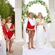 Греческое настроение на свадьбе подчеркнёт живая музыка. Пригласите музыкантов, которые порадуют игрой на арфе, гитаре, флейте. Вдохновением для конкурсов послужат истории про Греческих Богов и Олимпийские игры. Главное, заинтересовать гостей любого возраста.
