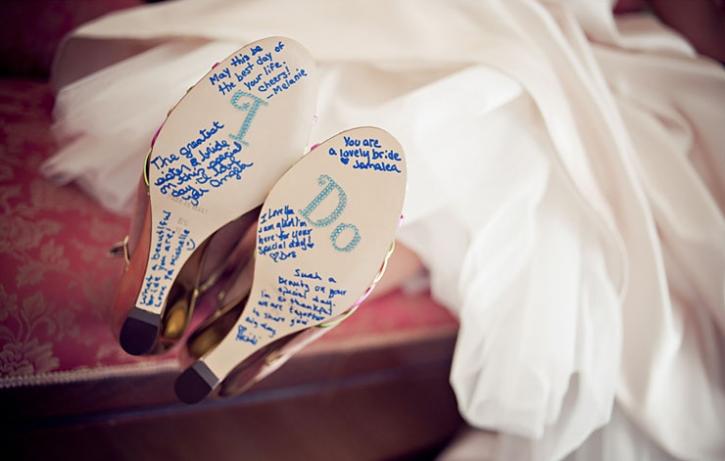 Имена подружек на подошве. Невеста не только тщательно выбирает фасон платья в греческом стиле, но и заранее подготавливает свою обувь, а именно, пишет на подошве имена свободных подружек. Чье имя быстрее сотрется, та следующая и выйдет замуж.