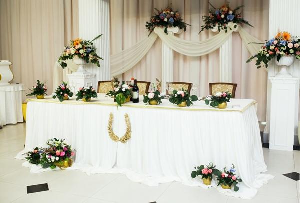 В оформлении зала для свадьбы в греческом стиле стоит использовать белый цвет в качестве основного. Его идеально дополнят такие оттенки, как зеленый, голубой, розовый, лимонный, золотой.