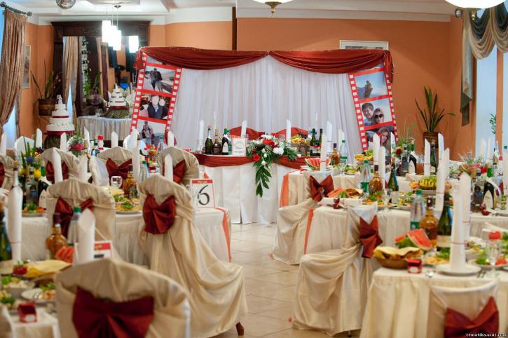 Не стоит забывать и об оформлении окружающего пространства. Ведь Голливуд в первую очередь – это одна большая съемочная площадка. Муляжи старинных кинокамер, красная ковровая дорожка, где-то лежащая кино-хлопушка, будто на пару минут отложенная ассистентом режиссера… Все это – абсолютно необходимые элементы декора на свадьбе в стиле «Голливуд». Фотозону можно оформить в виде небольшой сцены, на которой вручают призы одной из мировых кинопремий.