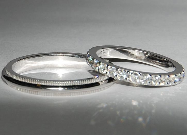 Что касается платины и палладия, эти металлы используются для изготовления обручальных колец с камнями в чистом виде. Платина гипоаллергенная, достаточно тяжелая и благородная, а родий – чуть дешевле и легче по весу, но внешне ничуть не хуже платины.