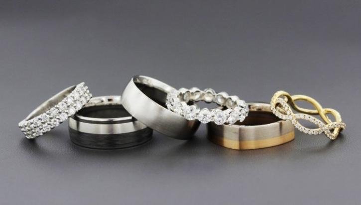 Один из трендов ювелирной моды – титановые обручальные кольца. Материал прочный и легкий. Из него можно изготовить кольцо любой формы и цвета, даже черного.