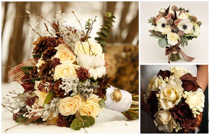 На кофейной свадьбе акцент на кофе необходимо сделать даже в букете невесты. Собрать необычный букет можно из экзотических цветов кофейных оттенков. Также можно найти кофейные розы и гладиолусы. Наилучший выбор – искусственные цветы.