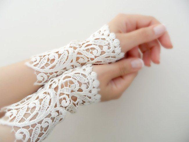 Кроме того, выбирая перчатки, фундаментом следует брать фактуру ткани платья: шёлк к шёлку, гипюр к гипюру и так далее. Но иногда к торжественному платью можно подобрать кожаные или кружевные свадебные перчатки, в зависимости от стиля, в таком случае важно подобрать правильный оттенок. С воздушными изделиями дело обстоит таким образом, что объёмные узоры повышают риск зрительного искажения формы, поэтому на свадьбу не подходят.