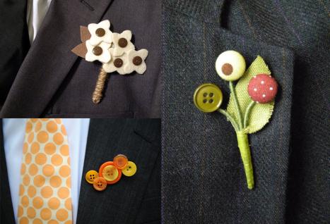 Как вы уже успели догадаться, бутоньерки на нашей свадьбе будут не совсем из цветов. Или совсем не из цветов. Тут уж дело вкуса и фантазии. Можно оформить миниатюрные букетики сугубо из пуговиц. А можно и разбавить живыми цветами. Роскошным розам сайт мы советуем подобрать компанию из таких же роскошных пуговиц. А лучший «сосед» нежным полевым цветам – простые и круглые пуговицы, как на старых ситцевых платьях.