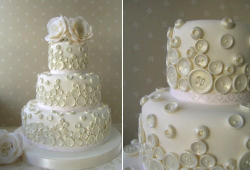 Да, и торт, конечно же, не останется без пуговичного наряда. Правда, с поправкой на съедобного. Конечно, особенно рисковые молодожены могут перемешать марципановые пуговицы с настоящими. Скажем так, предложить гостям игру «съедобное-несъедобное». Это, конечно же, шутка. А вот вкусные пуговки из крема, марципанового теста или мастики будут смотреться весьма аппетитно и привлекательно. Кстати, свадебный торт можно сделать в форме большой и вкусной пуговицы.