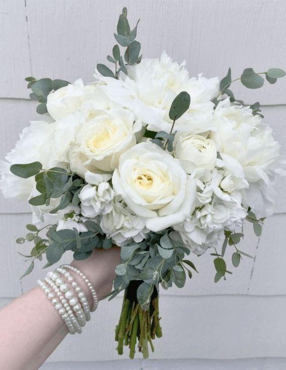 Флористы наперебой стараются удивить невест необычными букетами и сочетаниями, что, как ни странно, глотком свежего воздуха становится классика. Цветы кипенно-белого в этом сезоне станут идеальным выбором для невест. Это может быть классический букет роз или пионов, весенние тюльпаны, белоснежные каллы или гортензия. Подчеркнуть их свежесть поможет тёмная зелень или белые атласные ленты.