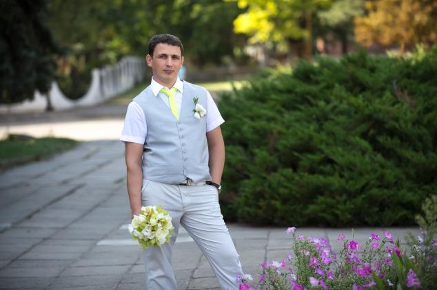 Жених может выбрать на свое усмотрение классический либо стилизованный костюм. При этом желательно, чтобы его цвет сочетался с цветом платья невесты. Если ее наряд голубого, розового, бежевого либо другого оттенка, то жениху можно подобрать такого же тона рубашку. Цвет галстука можно подбирать под цвет костюма либо под цвет платья невесты.