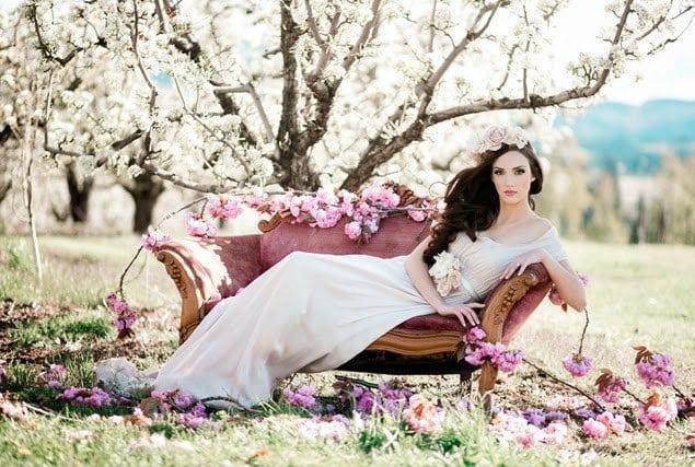 Стоит обратить внимание на платья, выполненные из воздушных, легких тканей, таких как тюль, шелк, гипюр. Выбор модели платья зависит от погодных условий, к примеру, для начала весны подойдут наряды с длинными рукавами, пышными оборками, для теплого мая — можно выбрать открытые кружевные платья, которые сейчас на пике популярности. Также можно подобрать короткое свадебное платье, которое подчеркнет красоту ножек невесты и позволит продемонстрировать яркие туфли. Великолепно будет смотреться наряд, как традиционно белоснежный, так и любого весеннего нежного оттенка: розового, голубого, лазурного, салатного, персикового, сиреневого. Чтобы избежать загрязнения подола, можно выбрать слегка укороченное платье либо рассмотреть вариант наряда с двойной, отстегивающейся длиной юбки.