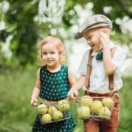 Для фотосессии выбирайте самые красивые фрукты и самые смелые, забавные идеи. Отлично, если получится выехать в яблоневый сад. Тогда ваши фото будут полностью совпадать с тематикой свадьбы.