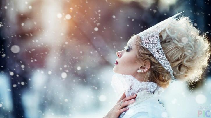 Начать стоит с образа невесты. Это должно быть платье спокойного и элегантного кроя, из плотной ткани, элегантное и очень умеренно декорированное. Из украшений лучше выбрать одну крупную деталь, сочетающуюся с образом повелительницы ледяного царства. Не забудьте про меховую накидку или плащ из плотной шерсти, а также величественный головной убор: зимой очень уместно заменить фату на что-то необычное – например, тиару со стразами, или белую шляпку, украшенную застывшими цветами. Образ лучше всего выдержать в полностью белом цвете, разбавив лишь серебристыми или голубоватыми полутонами.