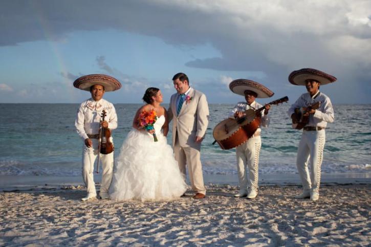 В Мексике очень популярны мариачи и музыкальные группы, поэтому они пользуется большим спросом, чтобы оживить мексиканские свадьбы, будь то всю ночь или один час. Они придают свадьбе особый мексиканский колорит.