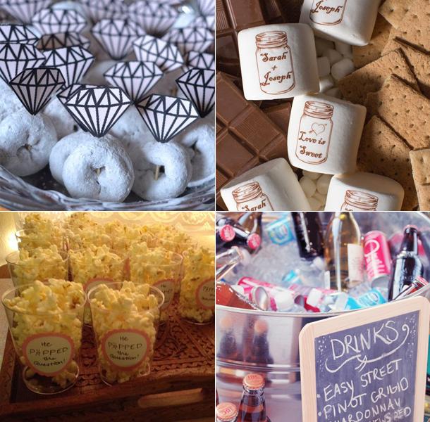 Тортики на помолвке – это важнейшая сладость, хотя они будут гораздо миниатюрнее, чем на свадьбе. Обручальные тортики помогут создать актуальную атмосферу. Особенно интересно и к месту будет смотреться на торте подпись: «Она сказала «ДА!». Отличным довершением станут тематические печенья на заказ, маршмеллоу, шоколадные изделия.