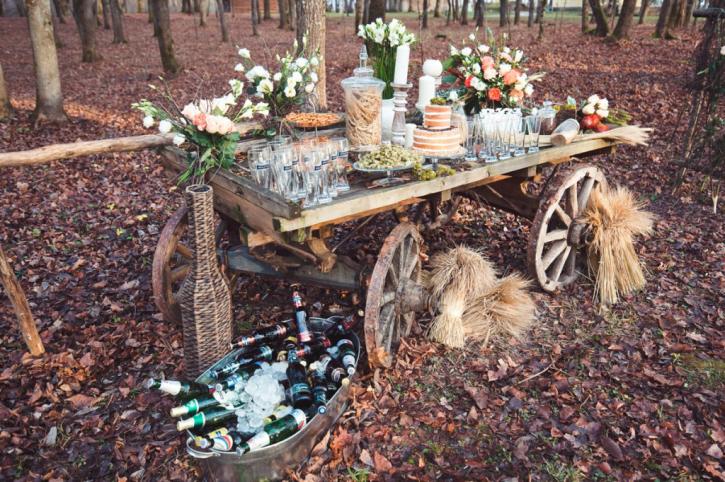 На заметку: свадьбе в тренде рустика, хмель подойдет фуршетный стол, который гармонично смотрится на открытых банкетных площадках, в природном обрамлении.