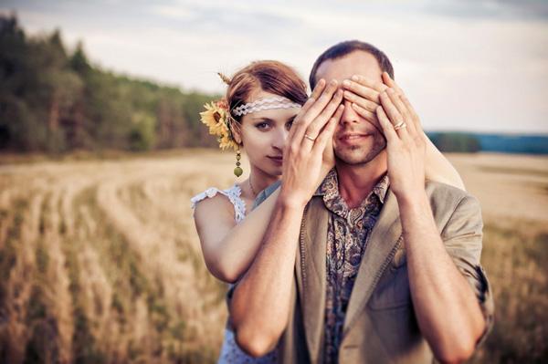 Гости тематической свадьбы должны поддержать молодых своими нарядами: дамы выбрать простые сарафаны и платья пастельных расцветок и из натуральных тканей, мужчины – джинсы и клетчатые рубашки. Закончат образ шляпы – фетровые, соломенные, ковбойские.