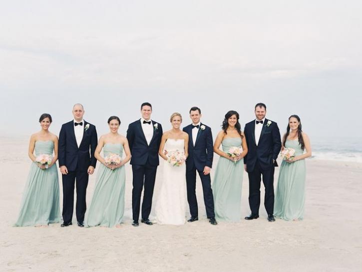 Наряды молодоженов и приглашенных на их морскую свадьбу могут быть выдержаны в свободном стиле – натуральные ткани, шляпки из соломки, легкие платья, просторные рубашки и брюки, «помеченные» морскими мотивами – бело-синими полосками, орнаментом с якоречками или штурвалами, рисунками в виде морских звезд и ракушек.