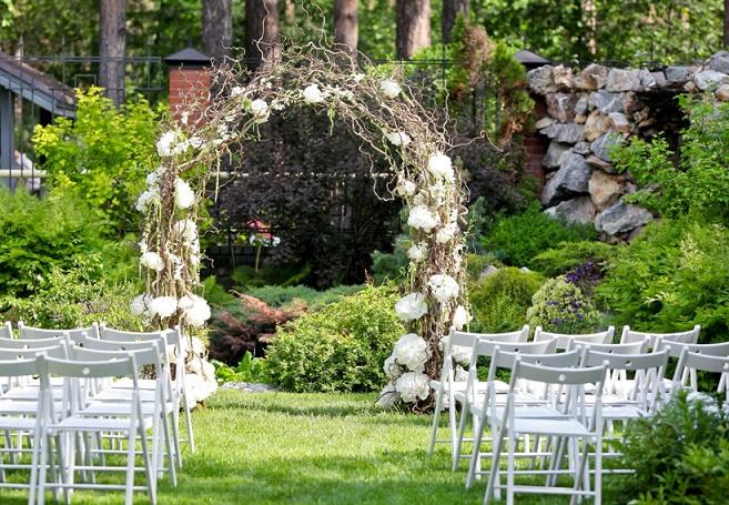 Идеальный вариант – загородный дом или дача с церемонией бракосочетания прямо в саду или на лужайке перед домом.