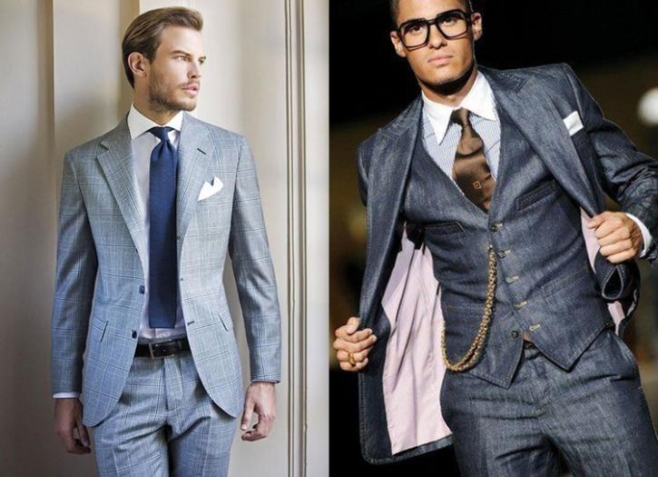 Коллекции -2018 предлагают отступить от черной костюмной классики в сторону синих, кофейных и бежевых цветов для костюма жениха.