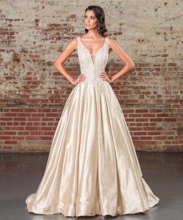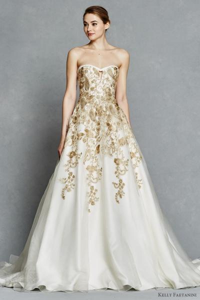 Золотой цвет может быть коварным. Как доминанта, он способен подавлять и перетягивать на себя все внимание. Невеста не должна потеряться в золотом наряде. Для этого ей следует выбрать правильный оттенок золотого и грамотно обыграть свой образ прической, макияжем, аксессуарами.