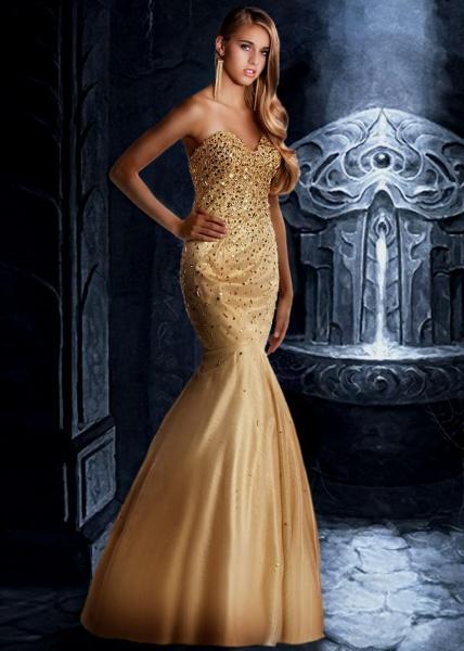 Золотое платье способно удивить разнообразием фасонов: воздушное и струящееся, короткое летящее и длинное со шлейфом, ярусами и с жестким корсетом, однотонное и комбинированное с другими цветами, облегающее типа «русалка» и пышное как у принцессы.