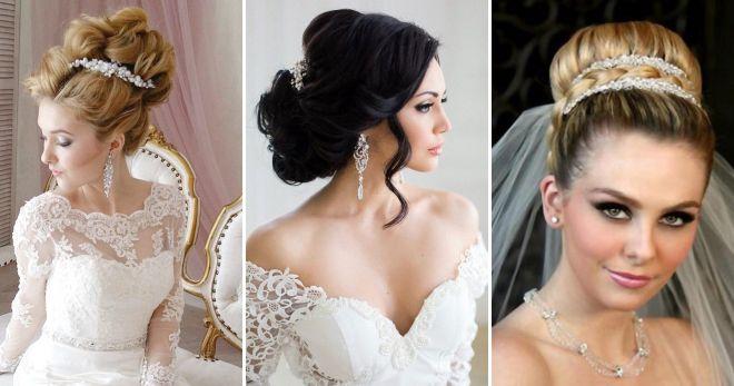 Она всегда в моде. Характерной особенностью классической прически является симметрия, будь то высоко поднятые волосы или ниспадающие локоны. Свадебное украшение – фата или диадема, или и то, и другое вместе. Часто выбираются для свадеб в дворцовом стиле, пышных и торжественных.