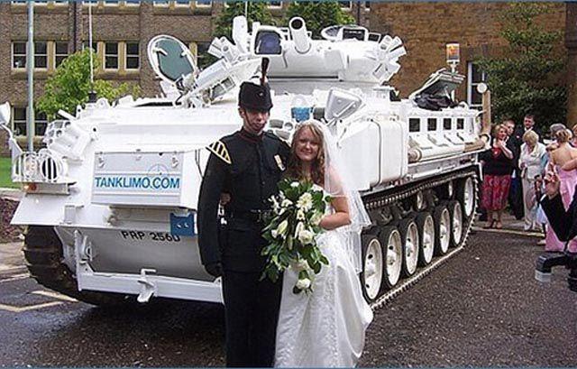 Думаете, обычным транспортом не удивить? Думаете, им, среди столь экзотических видов праздничного передвижения, нет места? Ха! Как насчет эха войны? Например, танка? Согласитесь, удержать рот закрытым крайне трудно, когда молодожены гордо выйдут к празднику из многотонной величественной машины, с отъявленной долей патриотизма на лице. А если в сопровождение добавить роту солдат или вовсе разыграть шоу, то ваше появление на празднике выйдет поразительно эффектным. Но поразить может почти любой автомобиль. Например, классический лимузин в сопровождении филигранно выставленного порядка байкеров - прекрасная смесь, хоть на первый взгляд и не слишком подходящая. В этом случае шоу для гостей начнется еще до банкета. Это эффектное появление вызовет бурю эмоций. Отблеск хромированного металла в купе с ревом брутальных моторов не оставят равнодушным никого. Главное, заранее отрепетировать сценки, в которых будете участвовать. Если свадьба тематическая, то вам не лишним будет обратить внимание на автомобиль, декорированный так, что будет имитировать космический шатл, пиратское судно или супергеройский автомобиль с кучей примочек. Для создания дополнительного эффекта позаботьтесь о музыкальном сопровождении и группе, что обеспечит полное погружение в атмосферу тематики праздника.