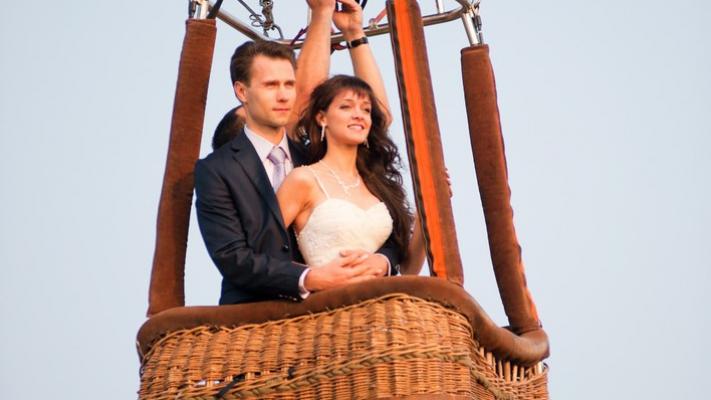 Неописуемо прекрасным можно считать романтическое путешествие по мягким облакам и ясному небу. Живописные пейзажи, и все, как на ладони, с высоты птичьего полета – мечта многих невест, если не всех. Один из видов воздушный шар - прекрасный способ выделиться. Самолет нарисует воздушные петли, маневрами затянет в небе узел вашего бракосочетания, который развязать уже не получится. Вертолет позволит зависнуть над облаками, раскрывая всю красоту тропосферы. Воздушный транспорт в целом весьма экзотичен. Впечатления, которые вы получите от полета, в душе и памяти останутся навечно. Также не забывайте об эффектном прибытии на воздушном транспорте к месту празднования – восторженные охи и ахи гостей, переполненных гаммой разнообразных эмоций, гарантированы. Парам не из робкого десятка стоит обратить внимание на парашюты или парапланы. На крайний случай можно оставить вингсюты, сравнительно недавно ворвавшиеся на пьедестал среди почитателей настоящих острых ощущений. В общем, долой платье! Вы можете не только получить дозу адреналина, но и сказать заветное «да» на высоте. В таком случае этому празднику еще очень долго не будет равных.