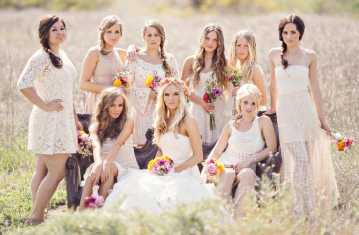Платья в стиле «бохо» на сегодняшний день может предложить любой модный салон. Соответственно, о нарядах можно не сильно беспокоиться. Главный принцип – наряд пары и гостей обязаны быть как можно более лёгкими и не сковывать. Вспомним хиппи: цветки, переплетенные с волосами, свободные и лёгкие косички, воздушные ткани, не облегающие, приятные силуэты. В этом стиле, присутствует свой изысканный шик, хоть он и своеобразен. Немаловажно сохранить его и не переборщить с палитрой красок, как в интерьере, так и нарядах.